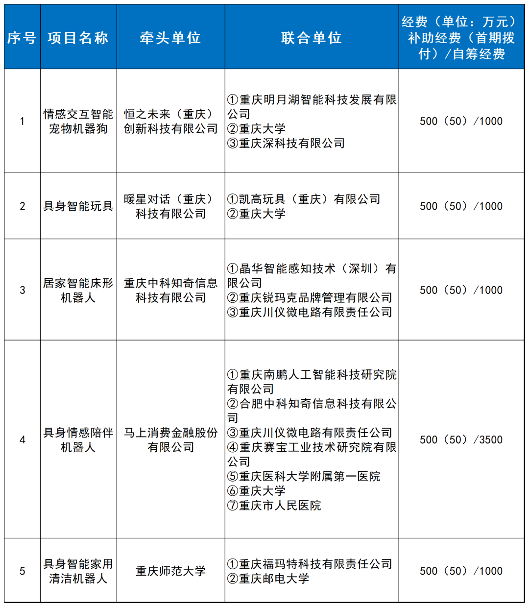 此次5个项目侧重于生活领域,其中部分产品已经在市场投用并反馈良好。比如,由马上消费金融作为牵头单位,联合重庆大学、重庆市人民医院等单位共同开发的“具身情感陪伴机器人”,此前入驻重庆市第一社会福利院后受到不少老年人喜爱。